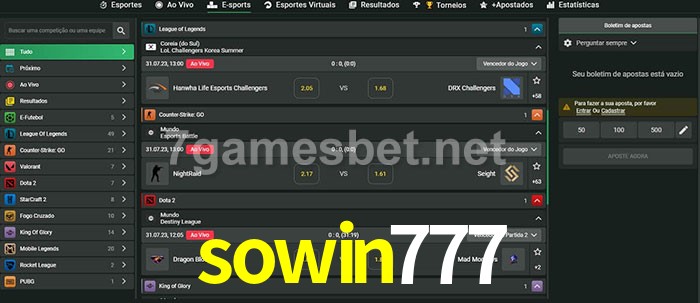 O sowin777 oferece uma grande seleção de opções de apostas em e-sports com probabilidades competitivas